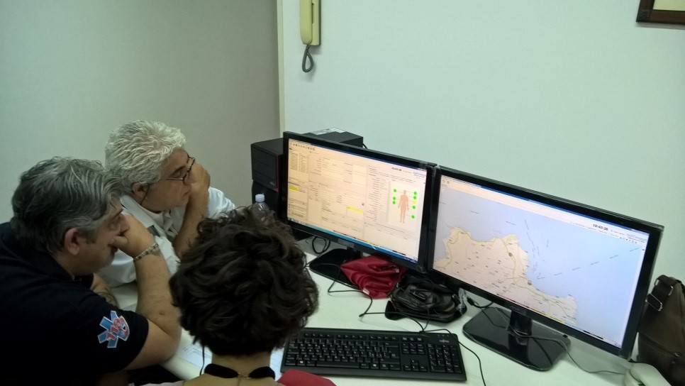 VVF team on board the burning ship, the Red Cross and at Advanced Medical Post or the ambulances, equipped with smart phones with INCIMOB, performed first encounter and subsequent triage of rescued victims from the burning ship and from the sea through INCIMOB. The data were dispatched to the respective INCIMAGs and DSS tools were activated to provide recommendations on patient status evolution, hospital dispatch and optimized use of available resources. The on-field activities were coordinated at the three Advanced Medical Posts, by the on scene Medical Coordinator operating INCIMAG mobile.